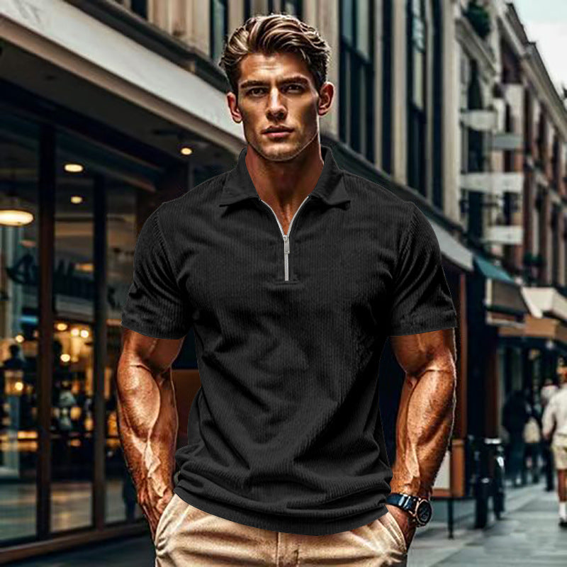 Herren Kurzarm Polohemd mit modernem Reißverschluss und strukturierter Oberfläche Aliams