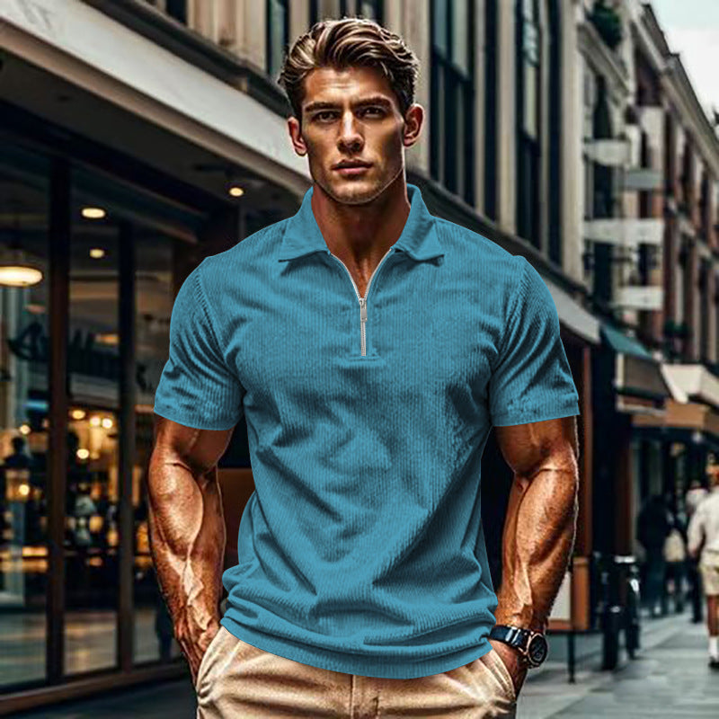 Entdecken Sie unser Herren Kurzarm Polohemd, das Komfort und Stil auf exquisite Weise vereint. Mit einem modernen Reißverschluss und einer strukturierten Oberfläche ist dieses Polohemd die perfekte Wahl für Modebewusste, die einen lässigen, aber eleganten Look bevorzugen.