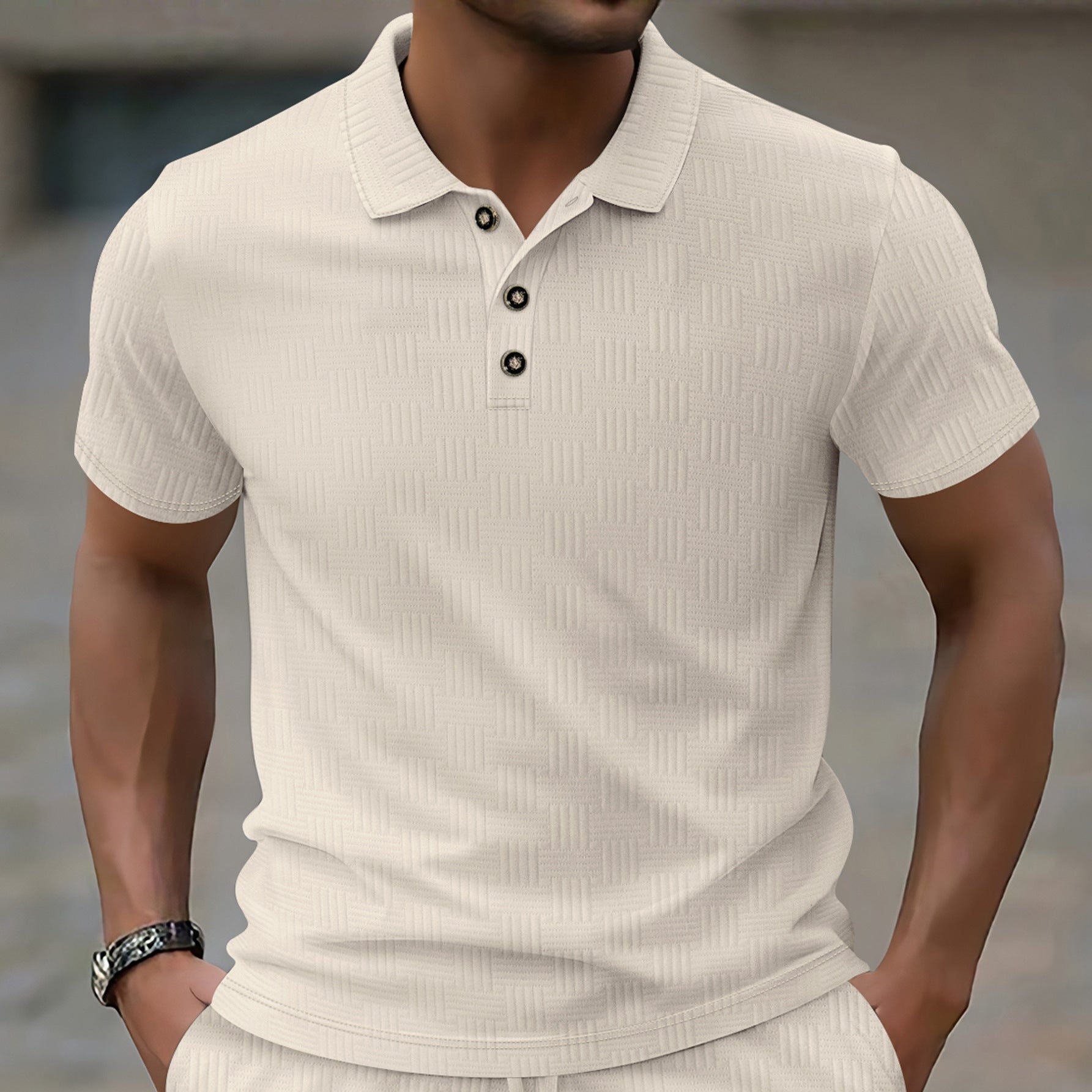 Herren Kurzarm-Polohemd mit strukturiertem Design und hochwertigen Knöpfen Aliams