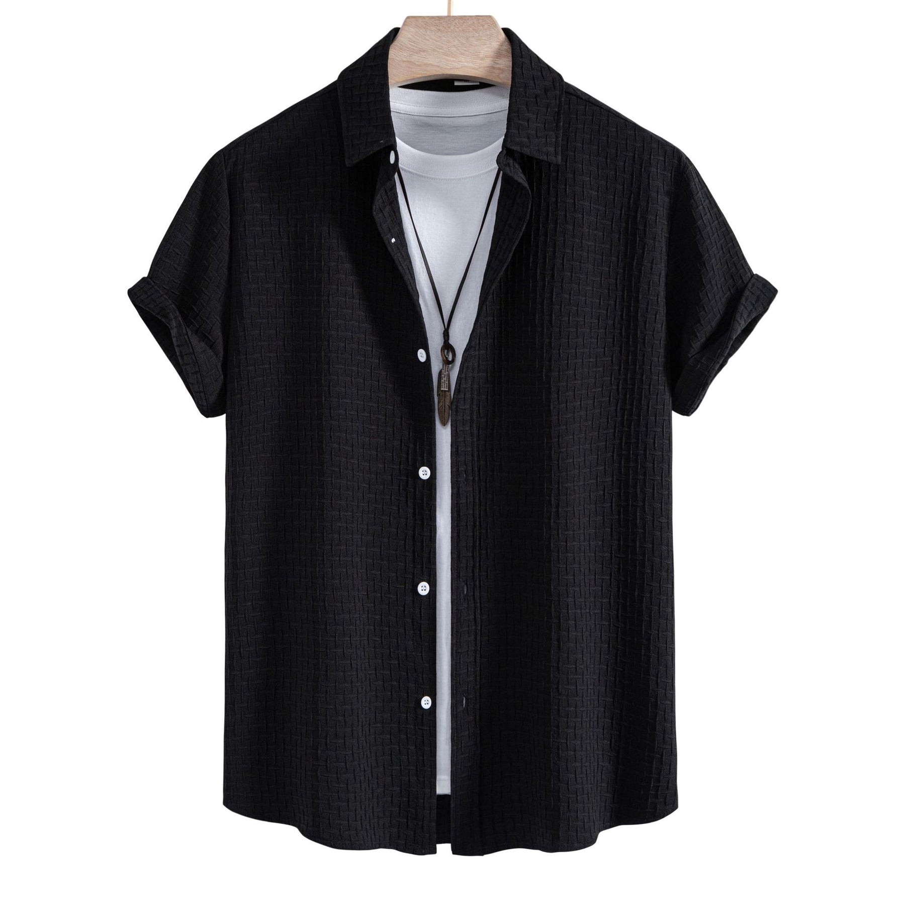 Herren Kurzarmhemd aus atmungsaktivem Strukturstoff mit eleganter Knopfleiste Aliams