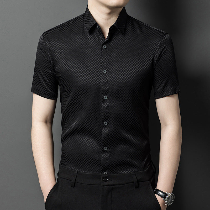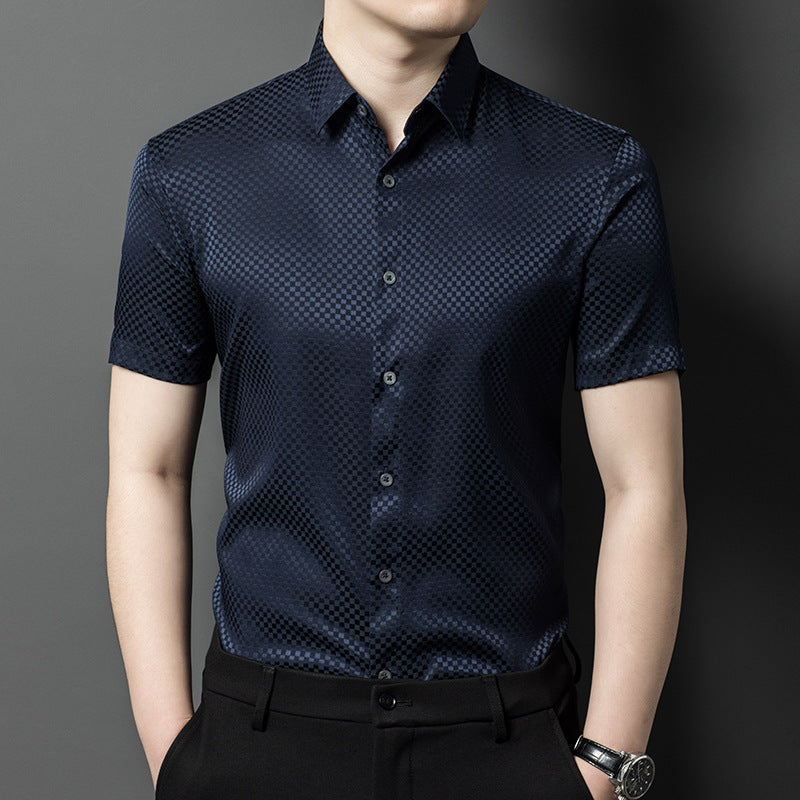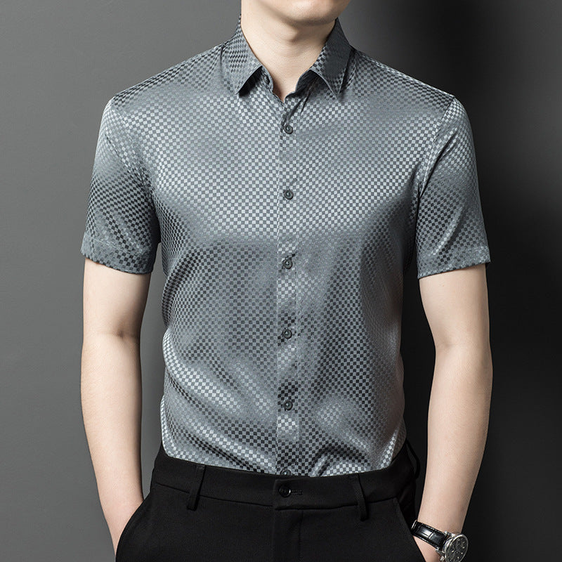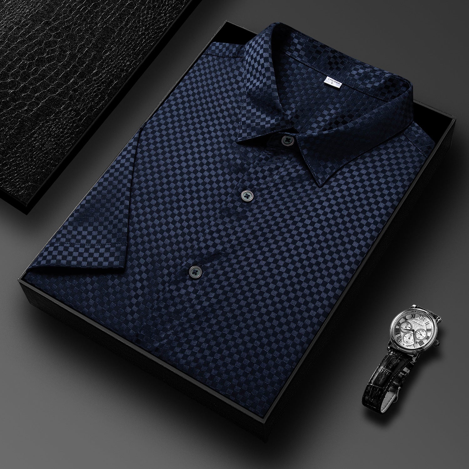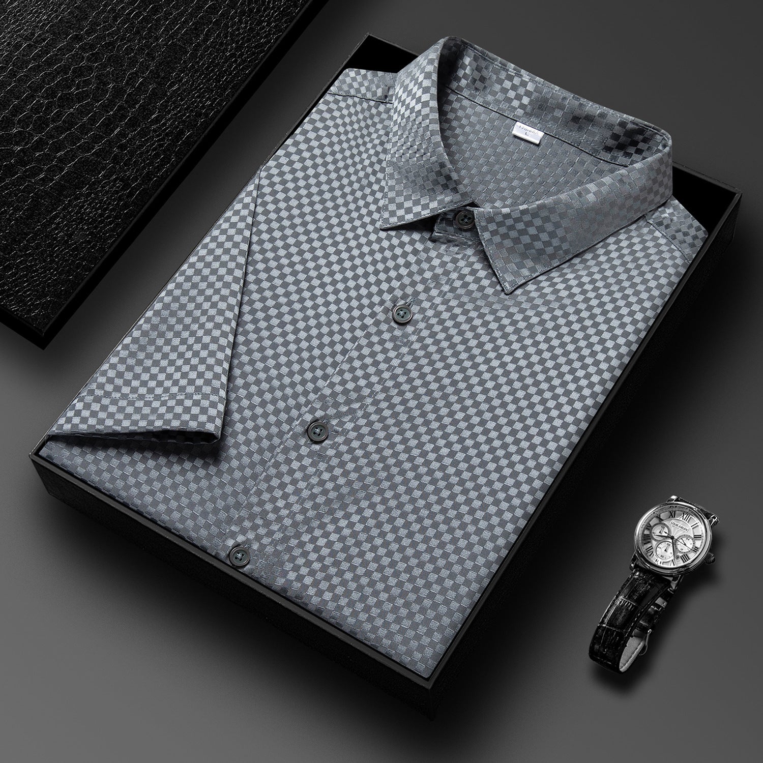 Herren Kurzarmhemd aus hochwertigem Baumwollmix mit subtilen Rautenmuster Aliams