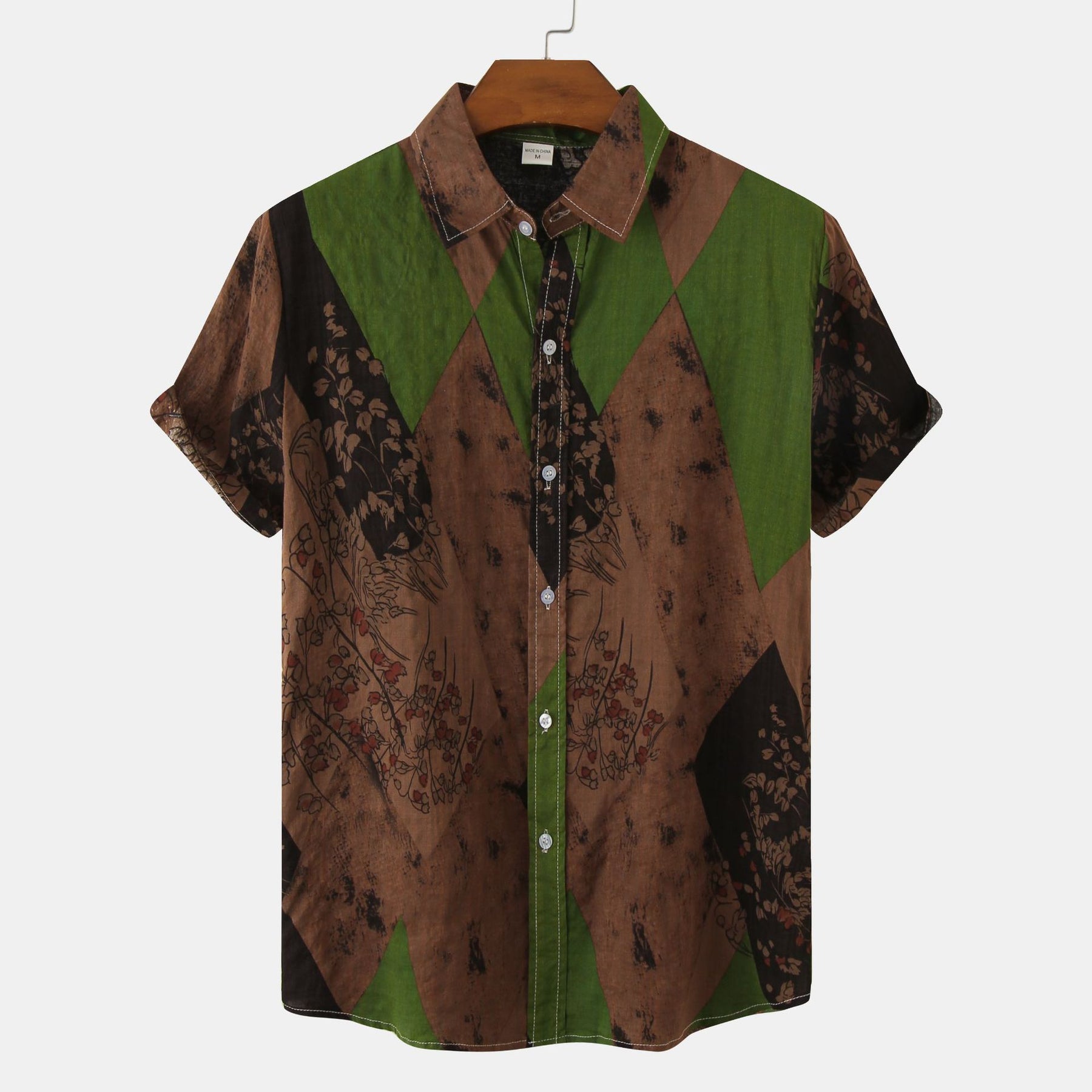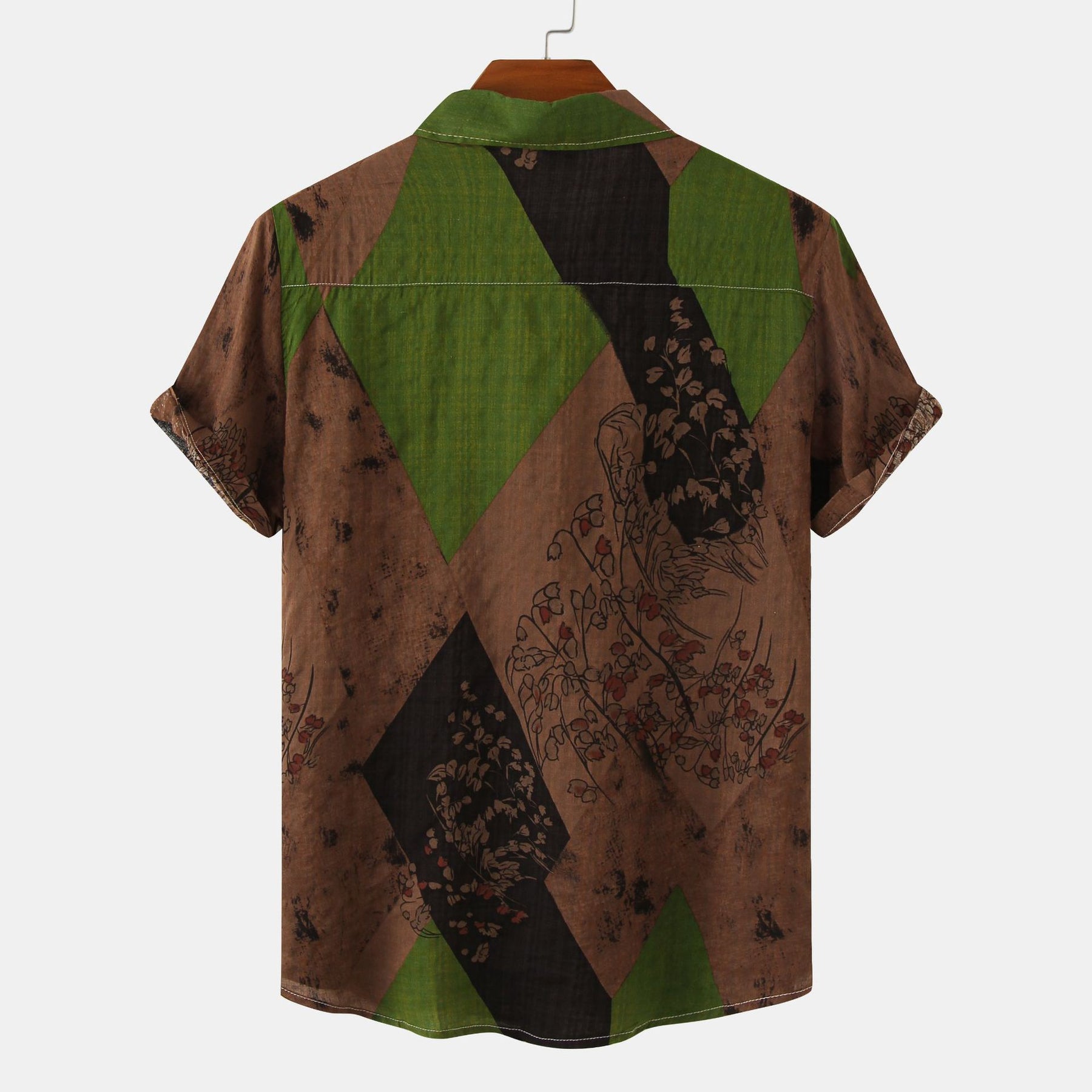 Herren Kurzarmhemd im kreativen Patchwork-Stil mit botanischen Akzenten Aliams