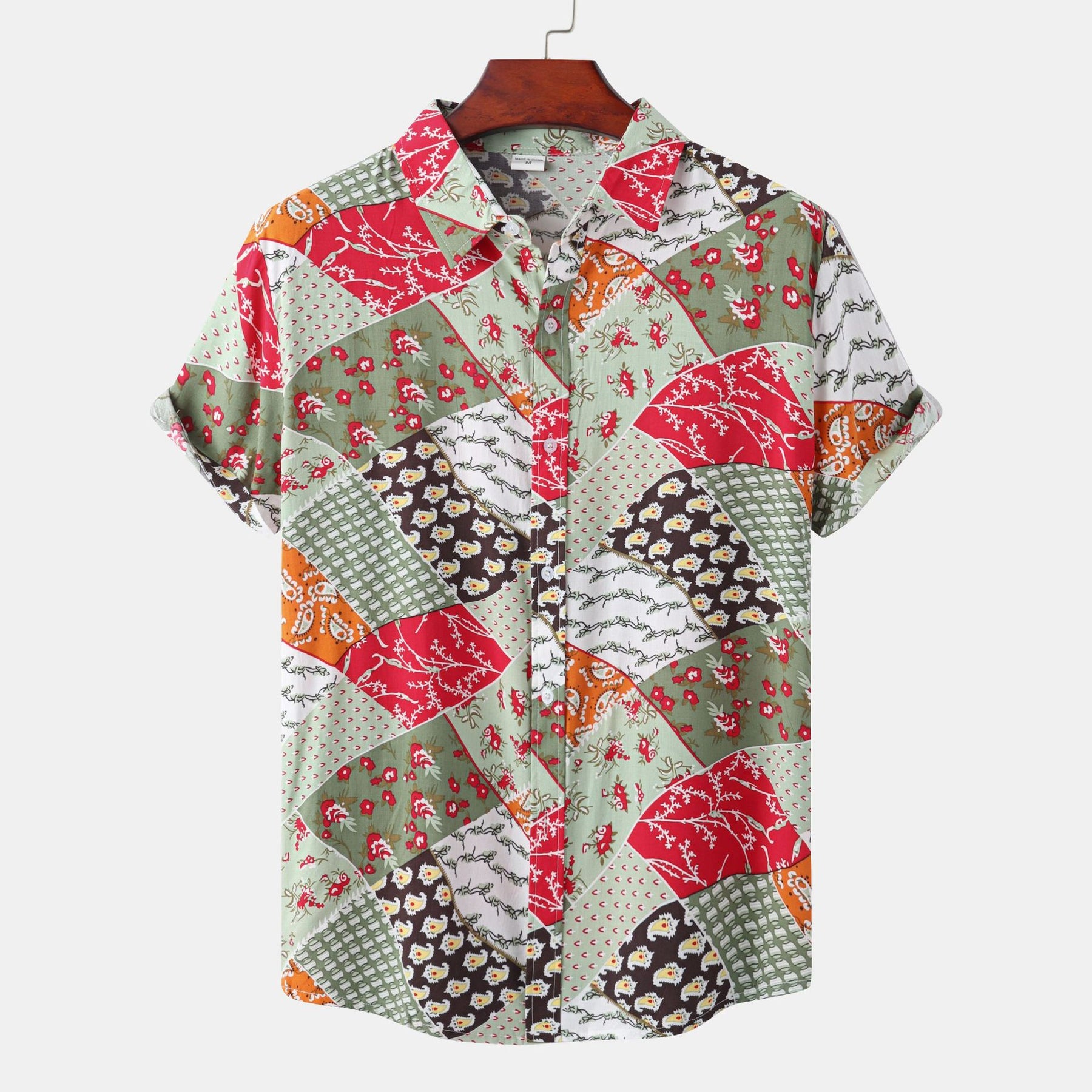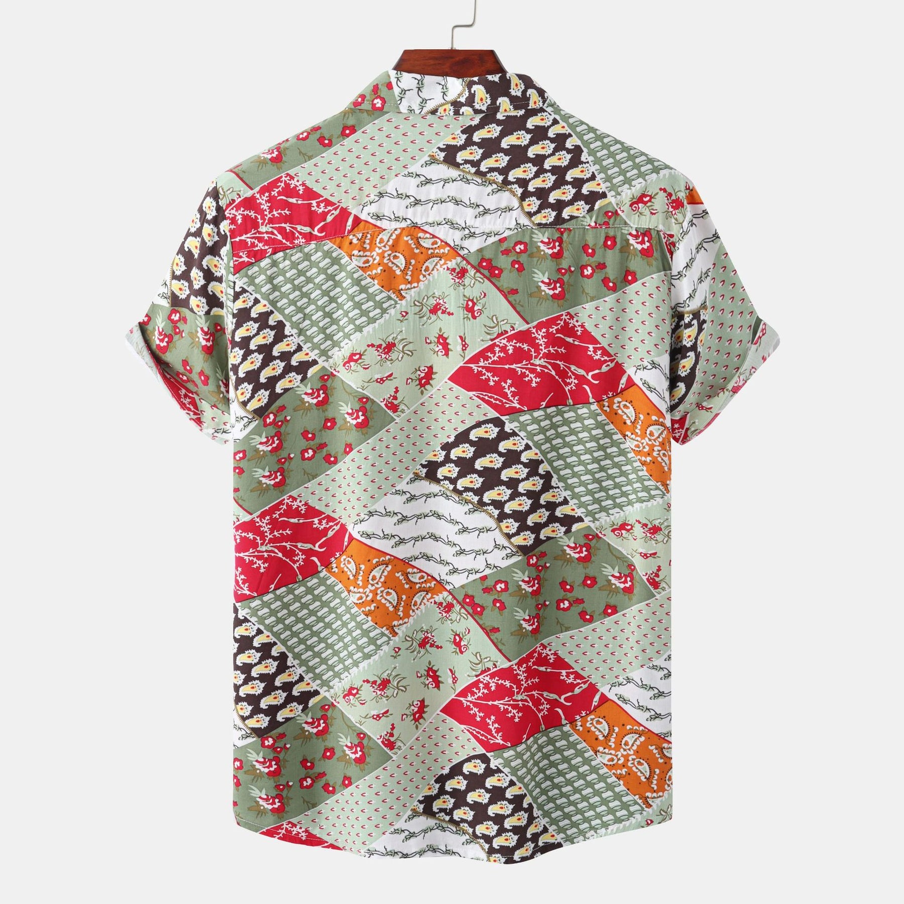 Entdecken Sie unser Herren Kurzarmhemd im kreativen Patchwork-Stil mit strukturierten Details, ideal für einen modernen und lässigen Look. Dieses Hemd besticht durch seine lebendigen Farben und einzigartigen Muster, die sich perfekt für lässige Anlässe im Frühling und Sommer eignen.