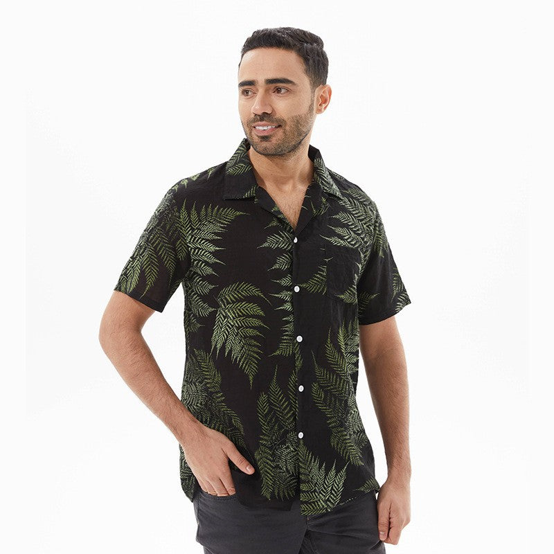 Entdecken Sie das Herren Kurzarmhemd im tropischen Blattdesign von Aliams, das perfekt für warme Sommertage geeignet ist. Dieses stilvolle Hemd vereint Komfort und modisches Design in einem.