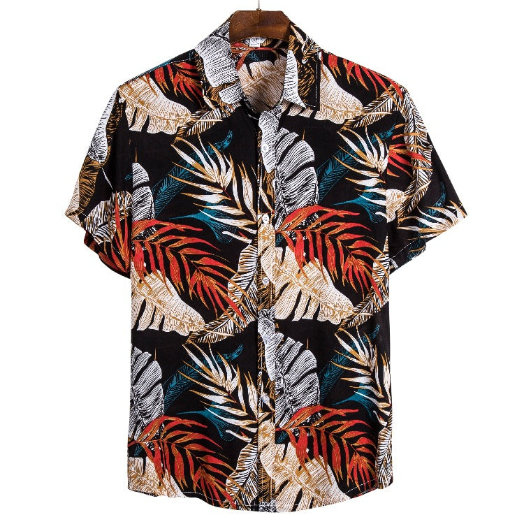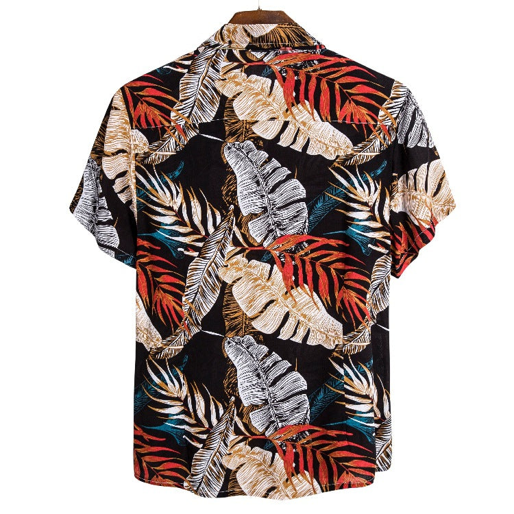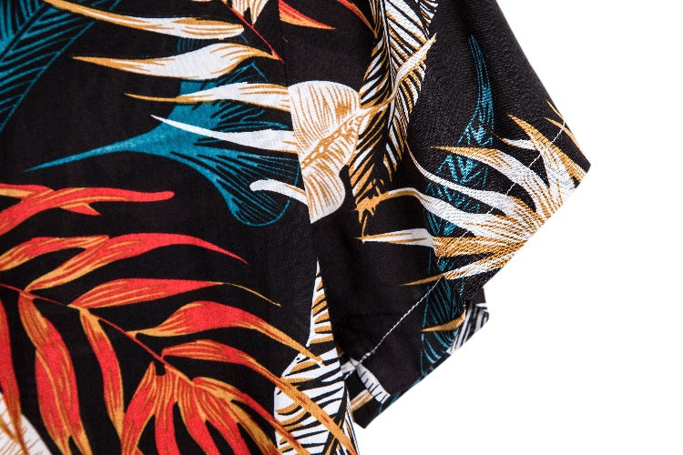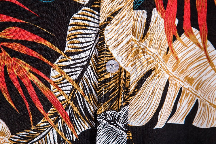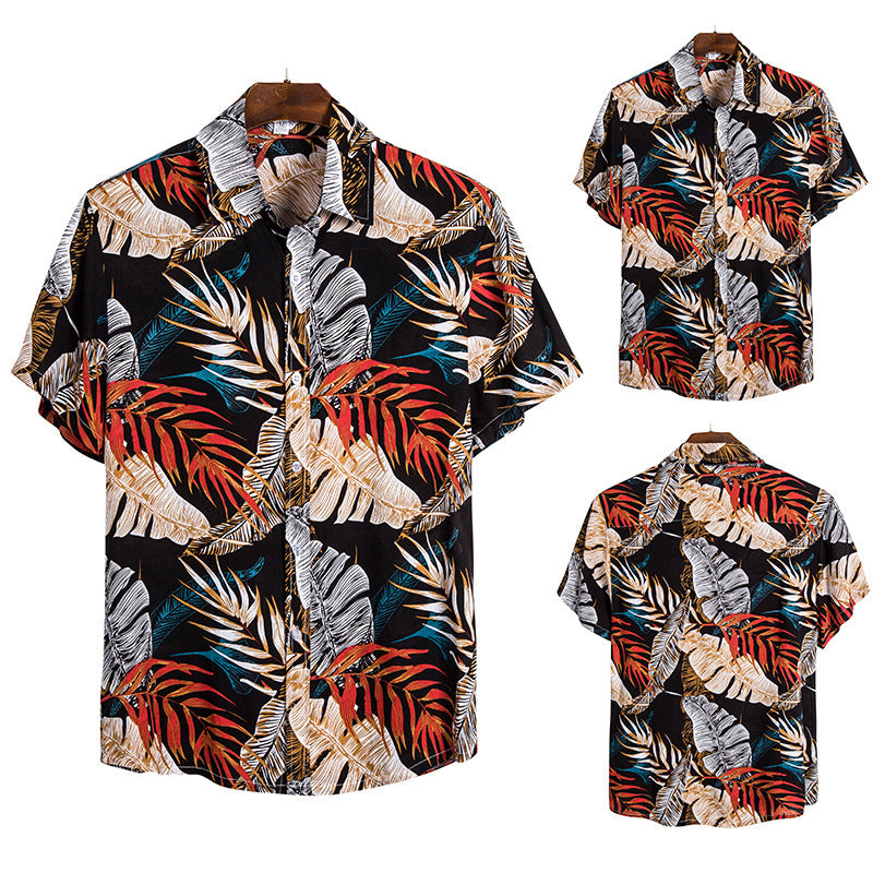 Herren Kurzarmhemd im tropischen Blätterdesign mit atmungsaktiver Baumwolle Aliams