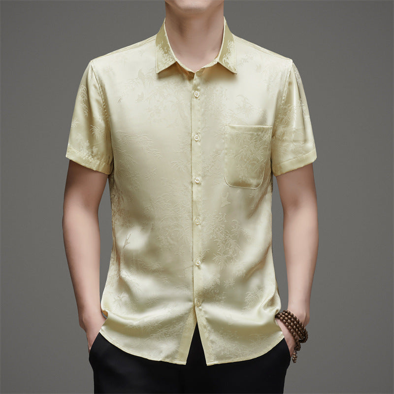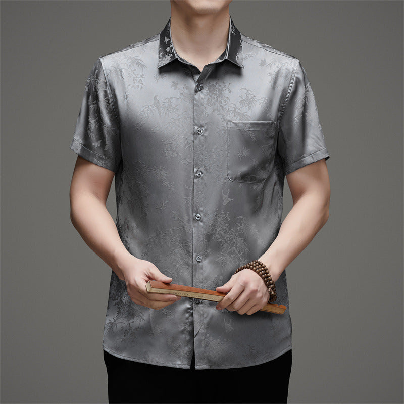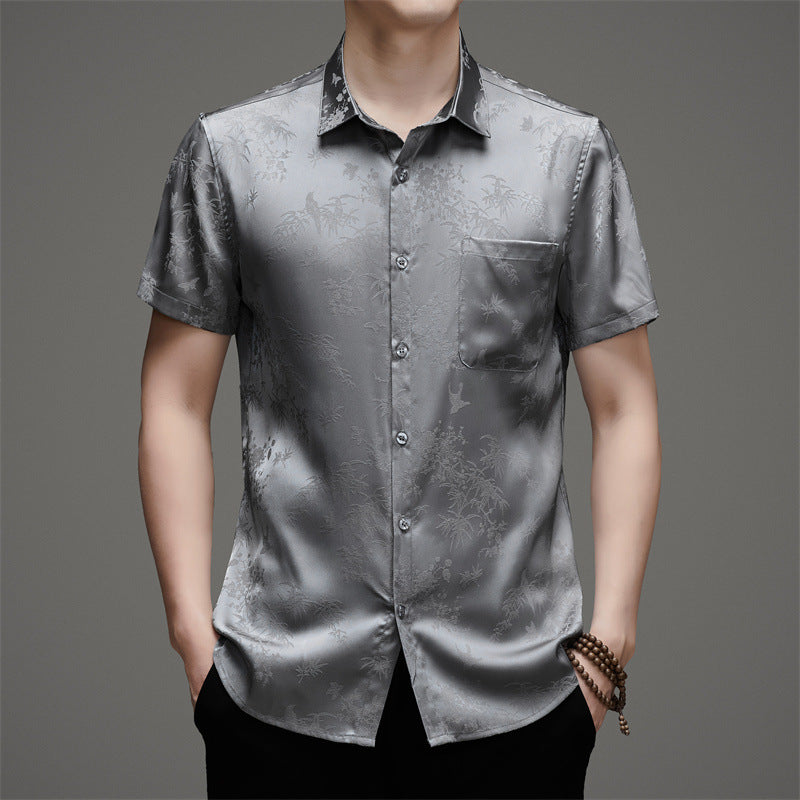 Herren Kurzarmhemd mit ansprechendem Floral-Muster und feinem Glanz Aliams