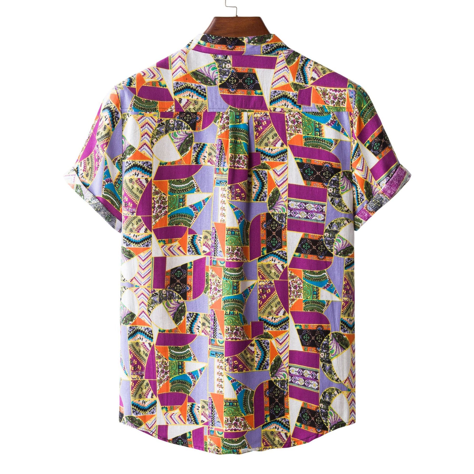 Entdecken Sie das Herren Kurzarmhemd mit auffälligem Patchwork-Muster von Aliams, das höchste Ansprüche an Stil und Komfort erfüllt. Dieses Hemd besticht durch ein kreatives und farbenfrohes Design, das sowohl für Freizeitaktivitäten als auch für entspannte Büro-Looks ideal ist.