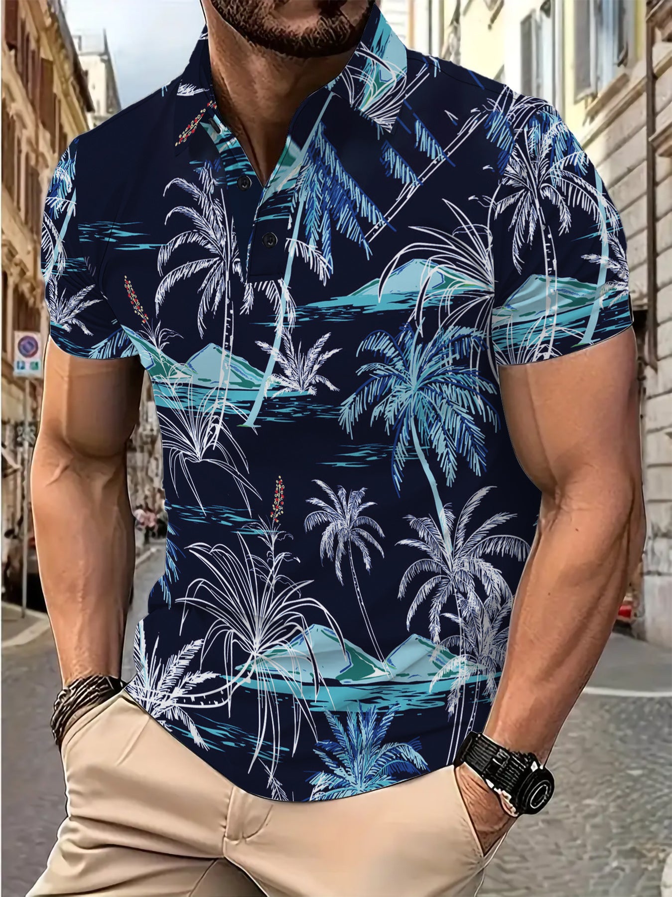 Herren Poloshirt mit tropischem Palmenmuster und atmungsaktiver Baumwollqualität Aliams