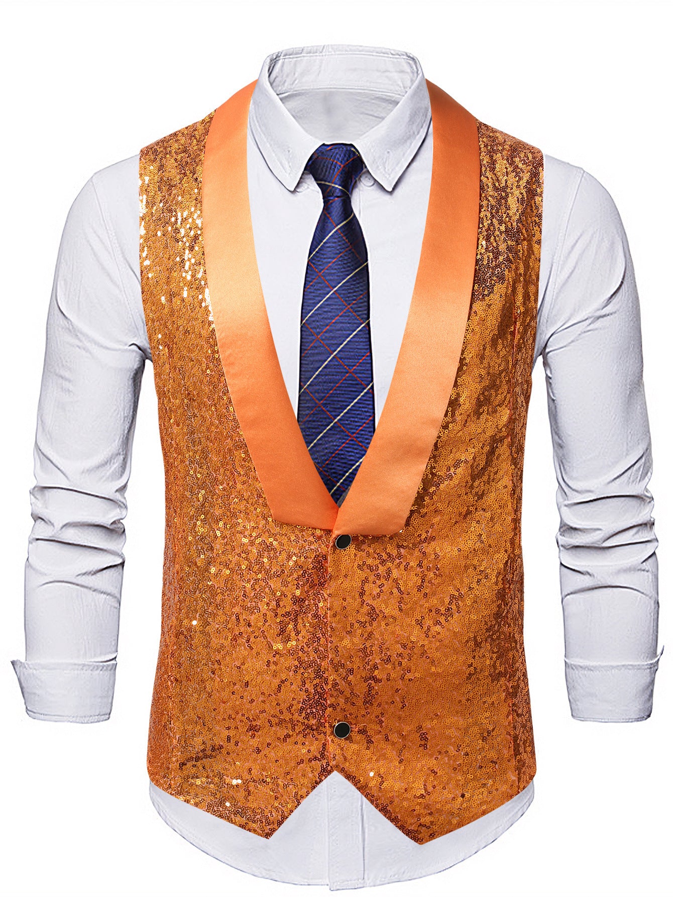 Entdecken Sie die elegante Herren schimmernde Pailletten-Weste von Aliams, die jede Veranstaltung zu etwas Besonderem macht. Diese außergewöhnliche Weste ist ideal für festliche Anlässe, Partys oder als auffälliges Highlight in Ihrer Abendgarderobe.