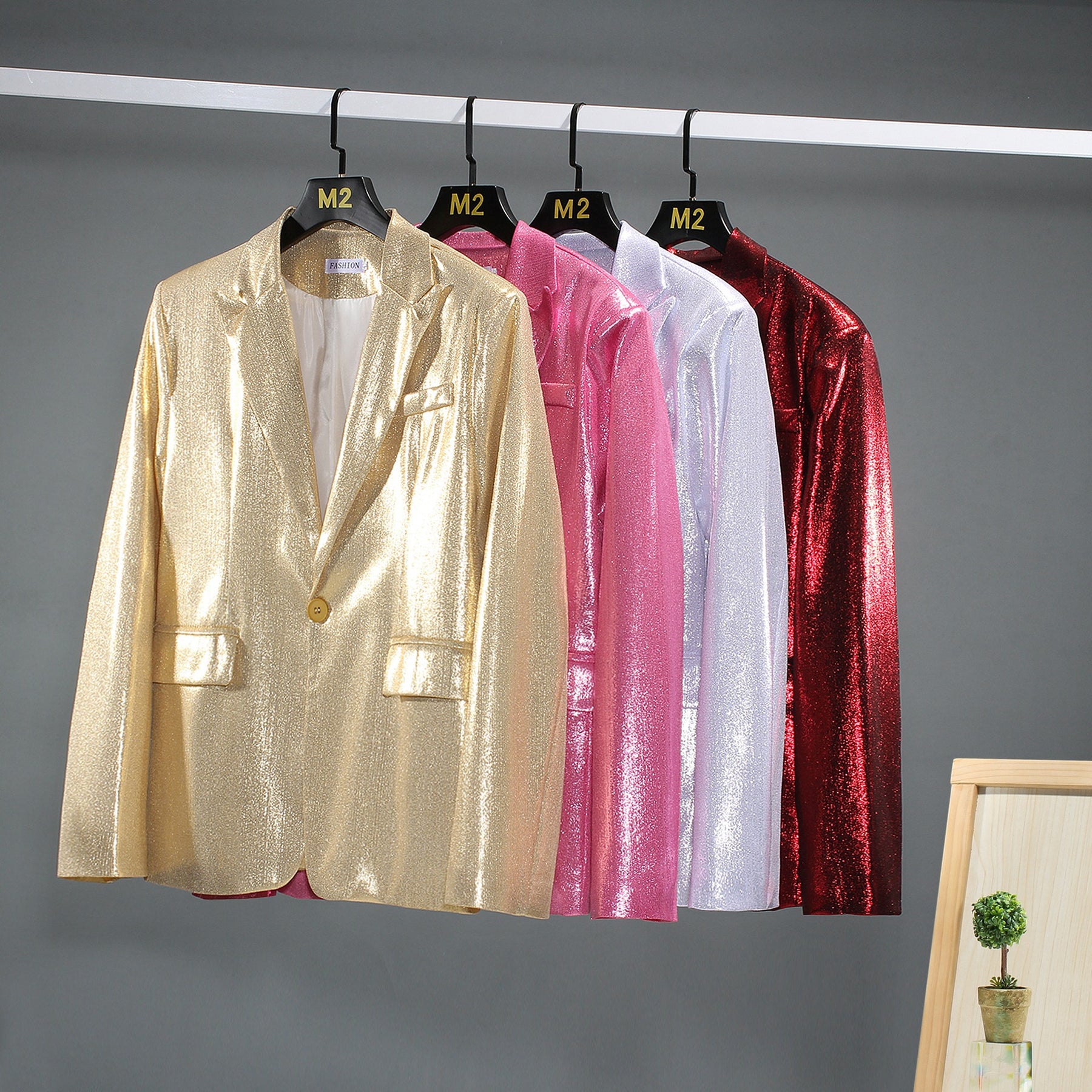 - Luxuriöses Design: Der Blazer besticht durch seinen glänzenden Stoff, der für Aufsehen sorgt und Ihnen einen glamourösen Auftritt garantiert.