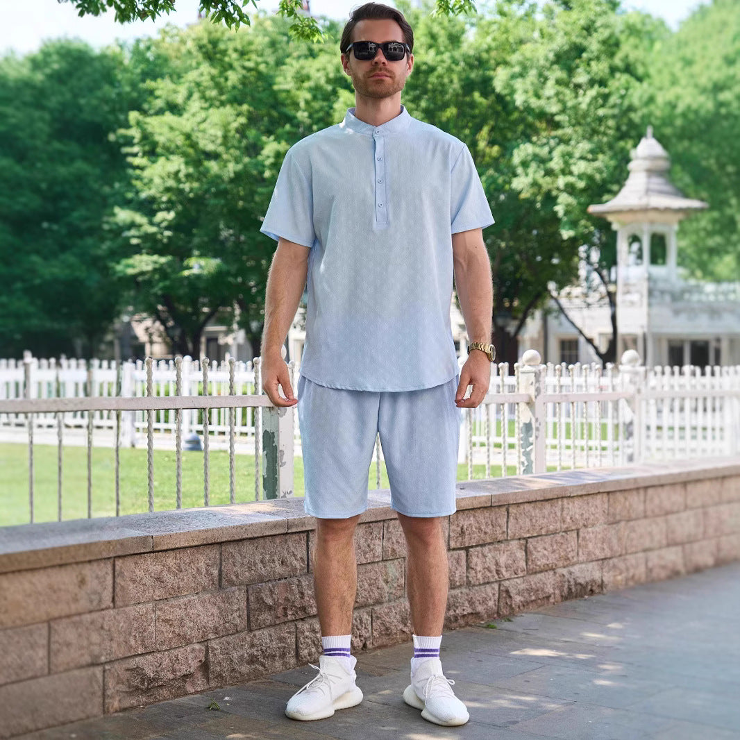 Entdecken Sie den idealen Begleiter für warme Tage mit unserem modernen, sommerlichen Freizeitanzug für Herren von Aliams. Dieser stylische Anzug besteht aus hochwertigem, leichtem Material, das für optimalen Tragekomfort sorgt.