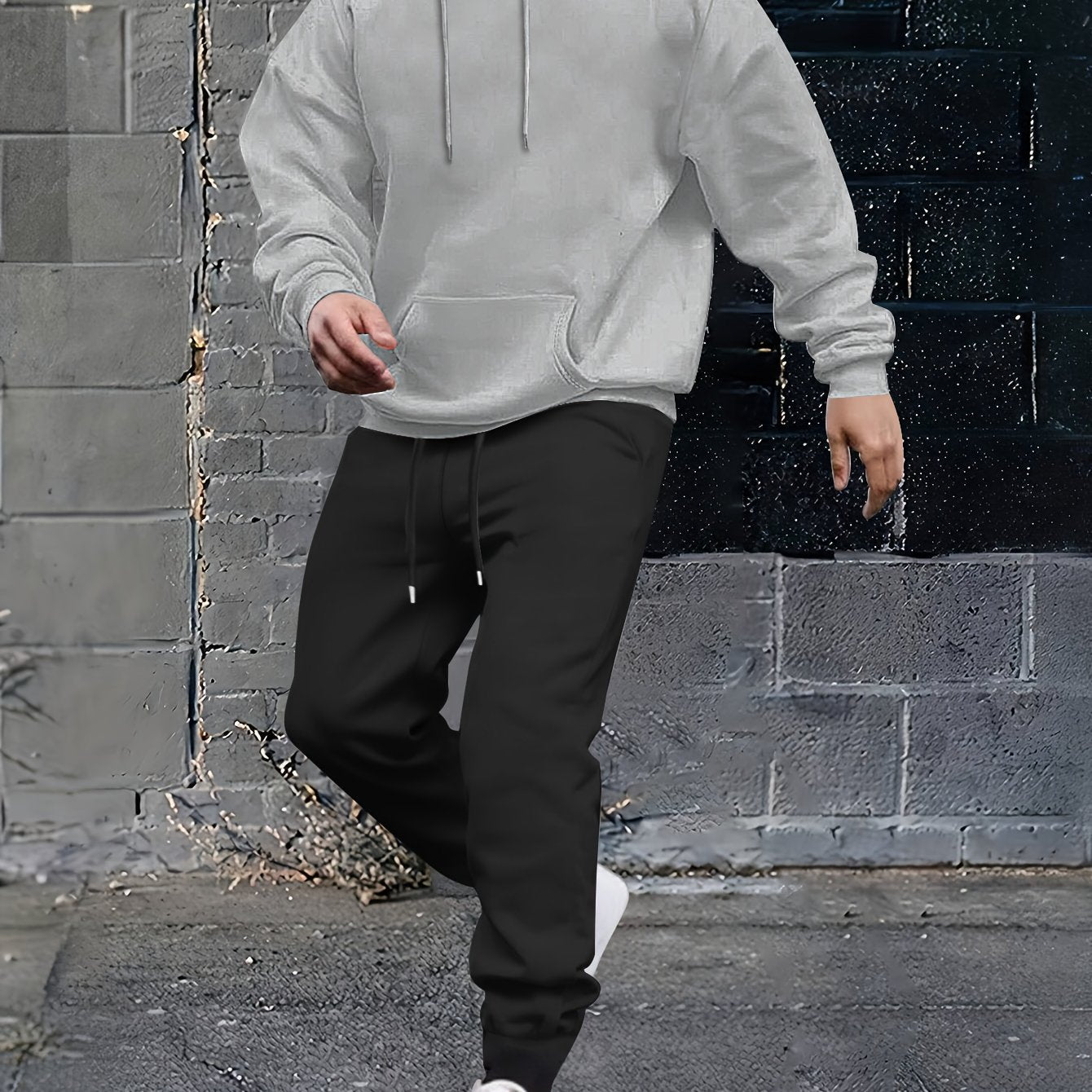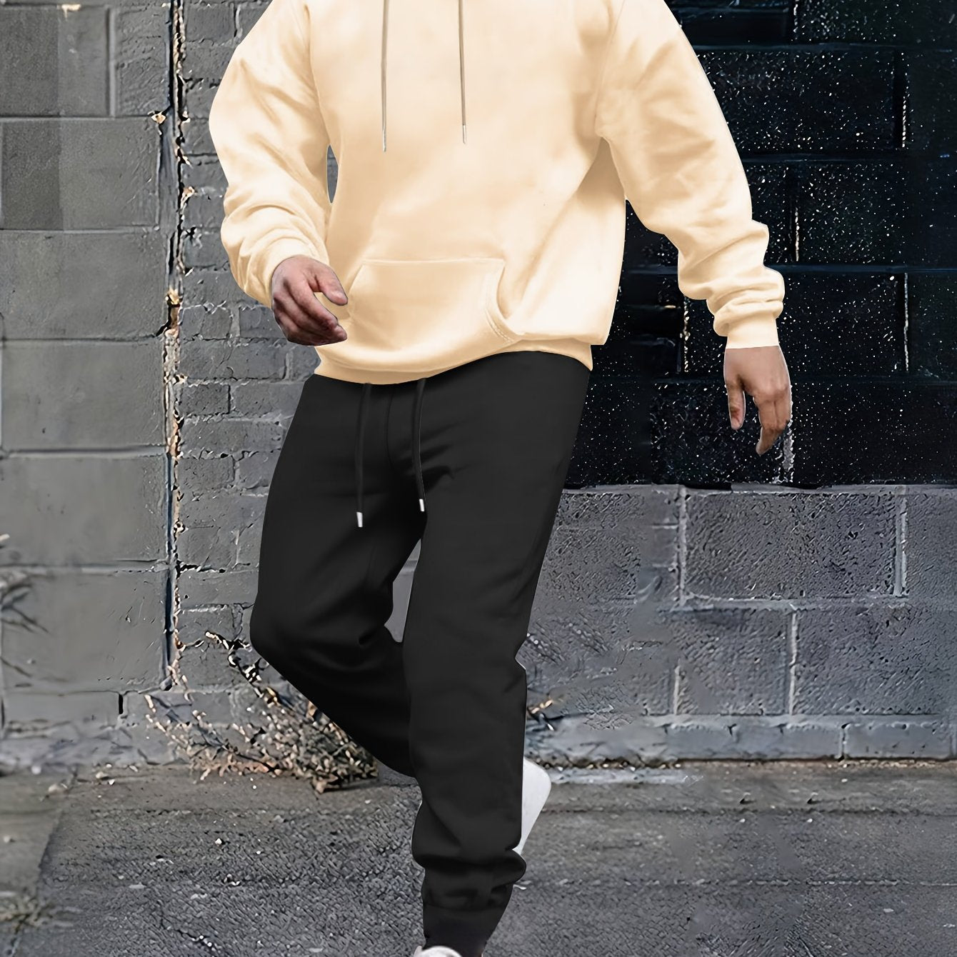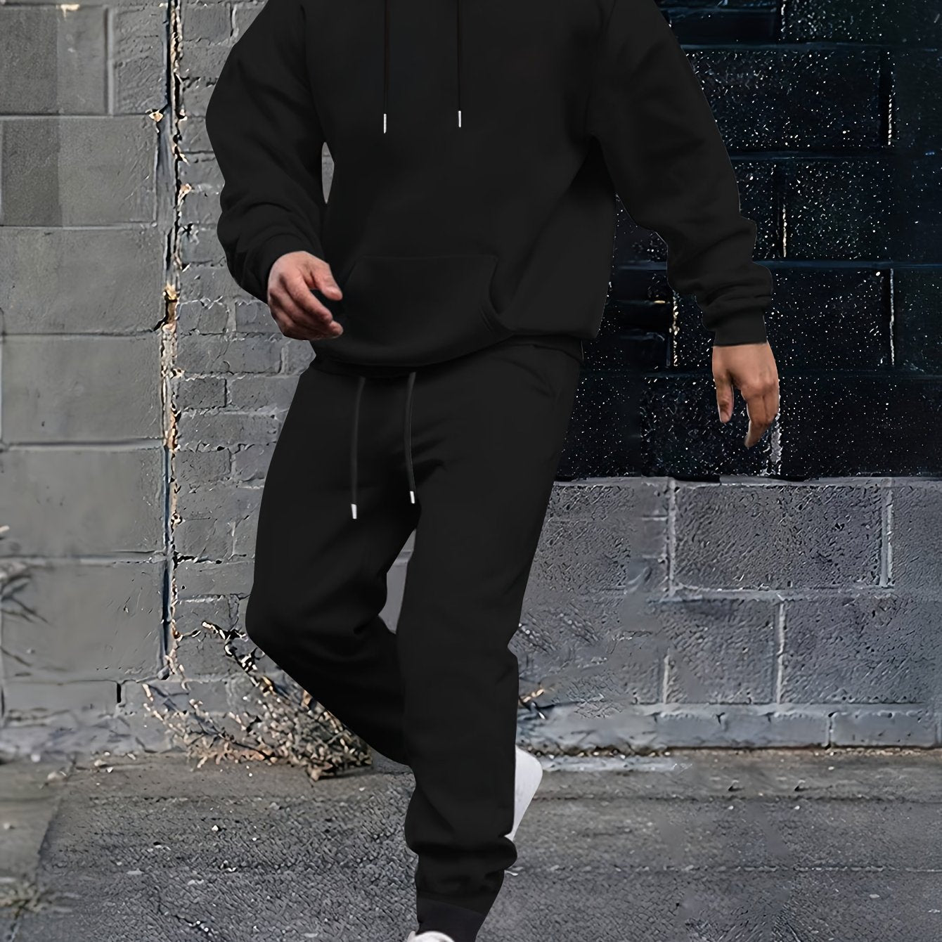 Herren Sportiver Kapuzenanzug mit verstellbarem Bund und seitlichen Taschen Aliams