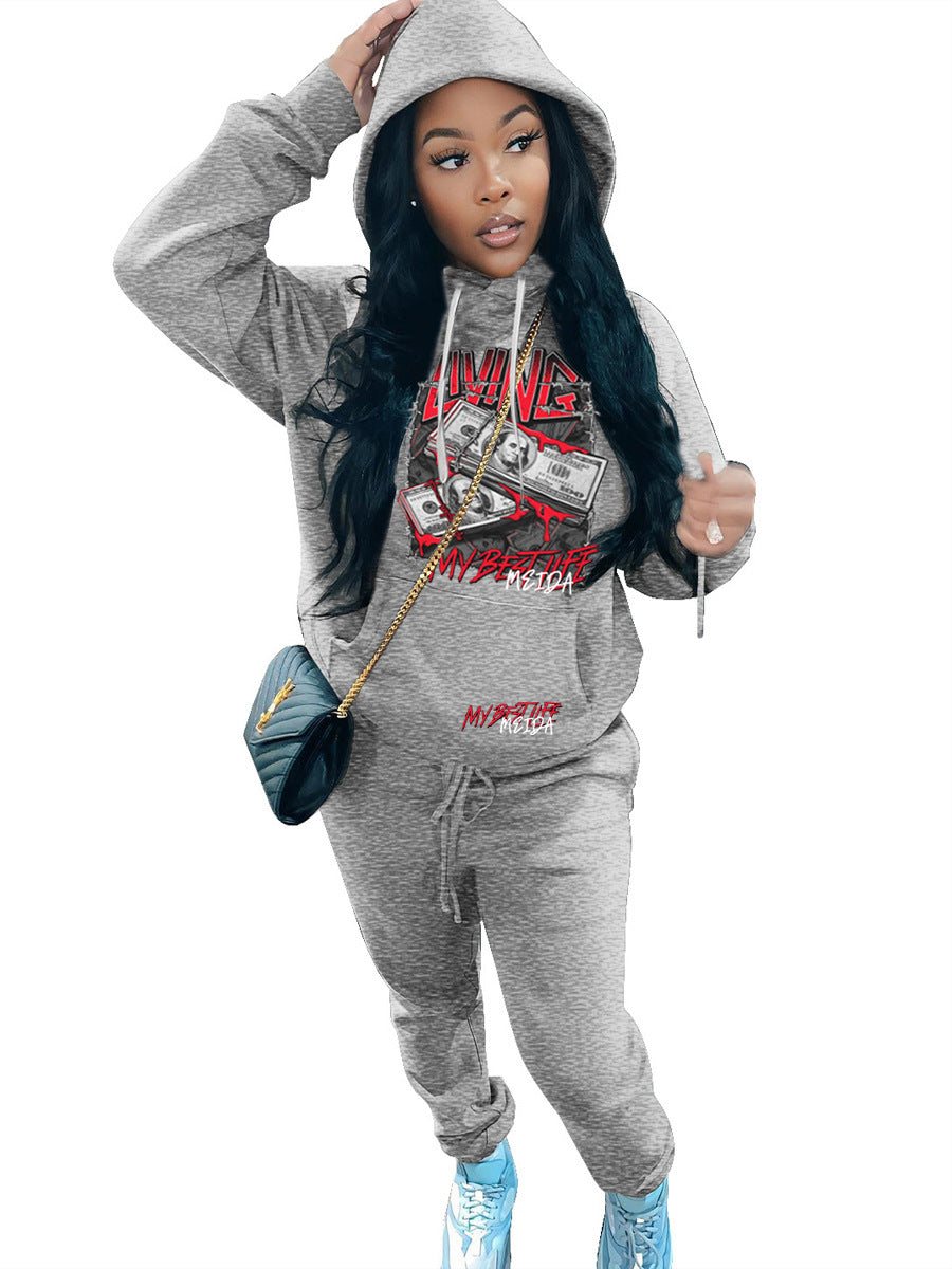 - Praktische Details: Der Hoodie hat eine Kängurutasche, in der Sie Ihre Essentials sicher verstauen können, während der elastische Bund der Jogginghose zusätzlichen Komfort bietet.