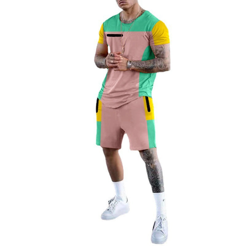 Herren sportliches Kurzarm-Set mit modernen Farbblöcken Aliams