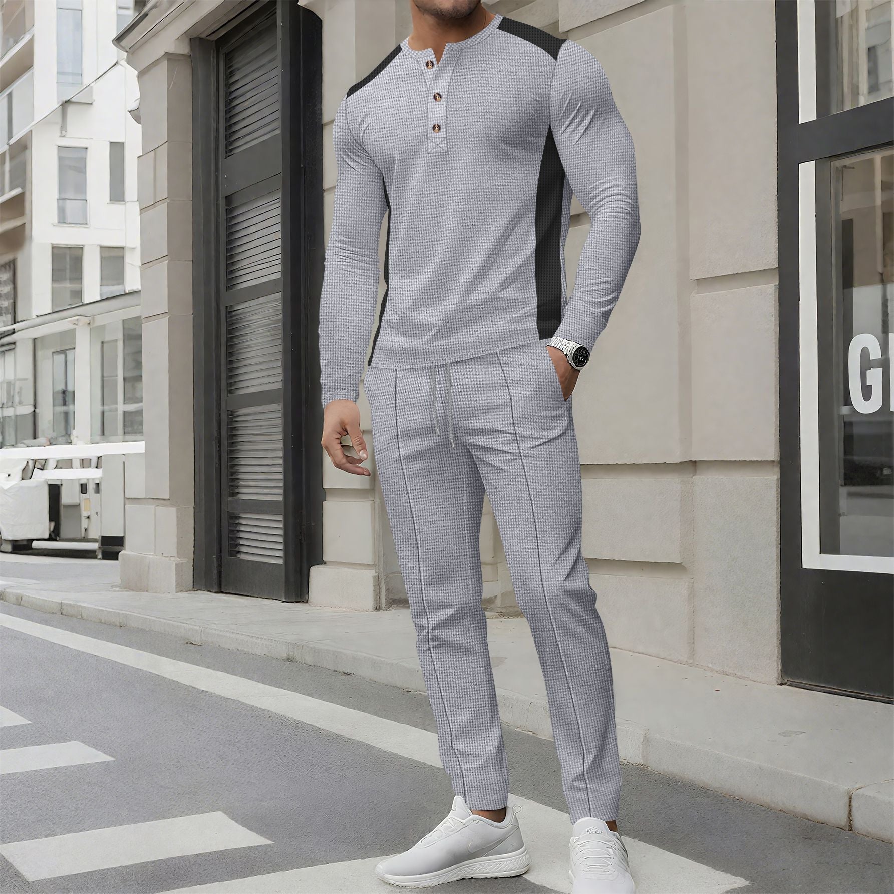 Herren Sportliches Langarm-Set mit Knopfleiste und eleganter Struktur Aliams