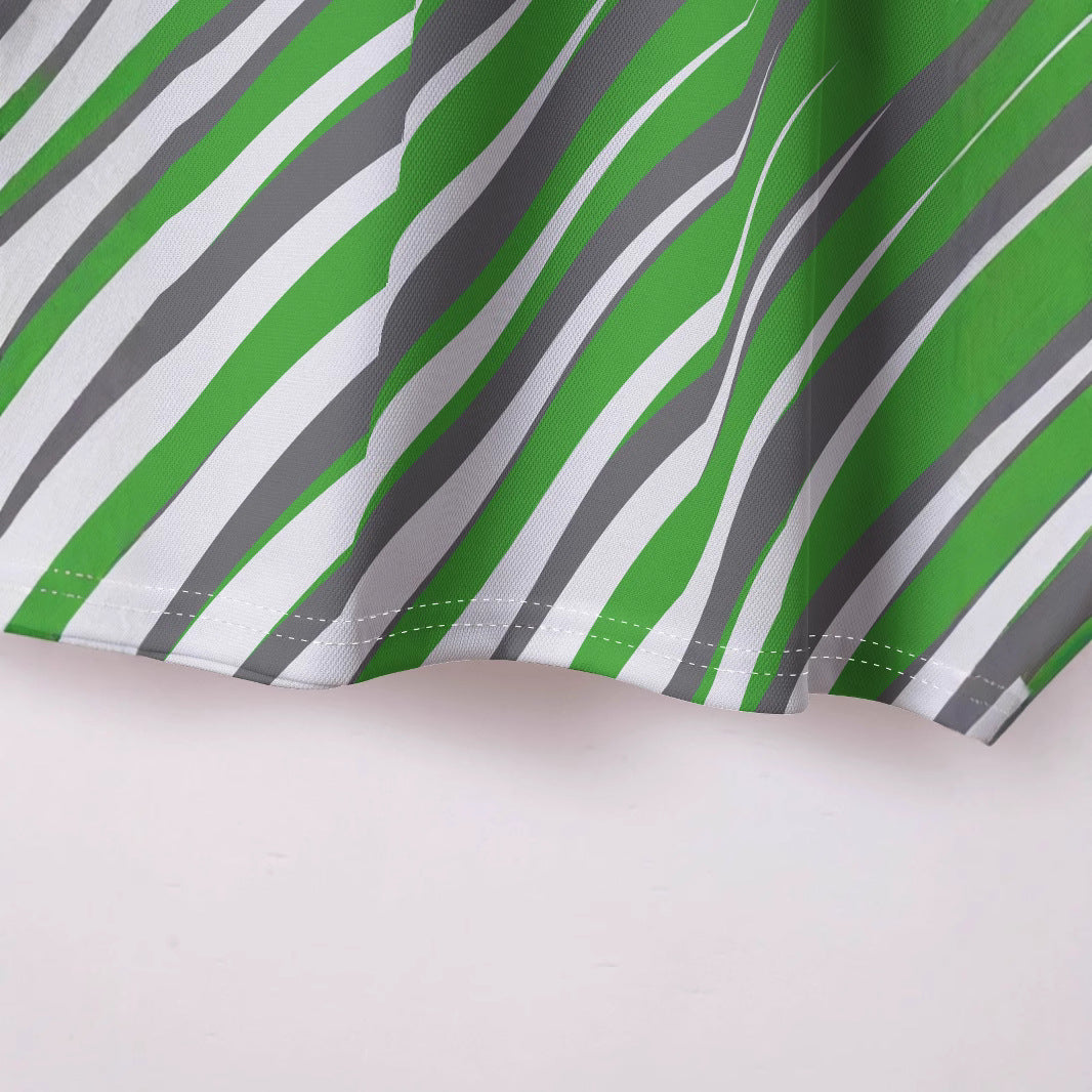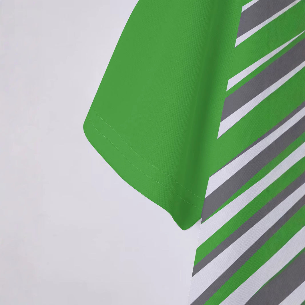 - Dynamisches Design: Die auffälligen Streifen in unterschiedlichen Grüntönen und Grau verleihen dem Shirt einen modernen, sportlichen Look, der sowohl im Alltag als auch im Sportbereich überzeugt.