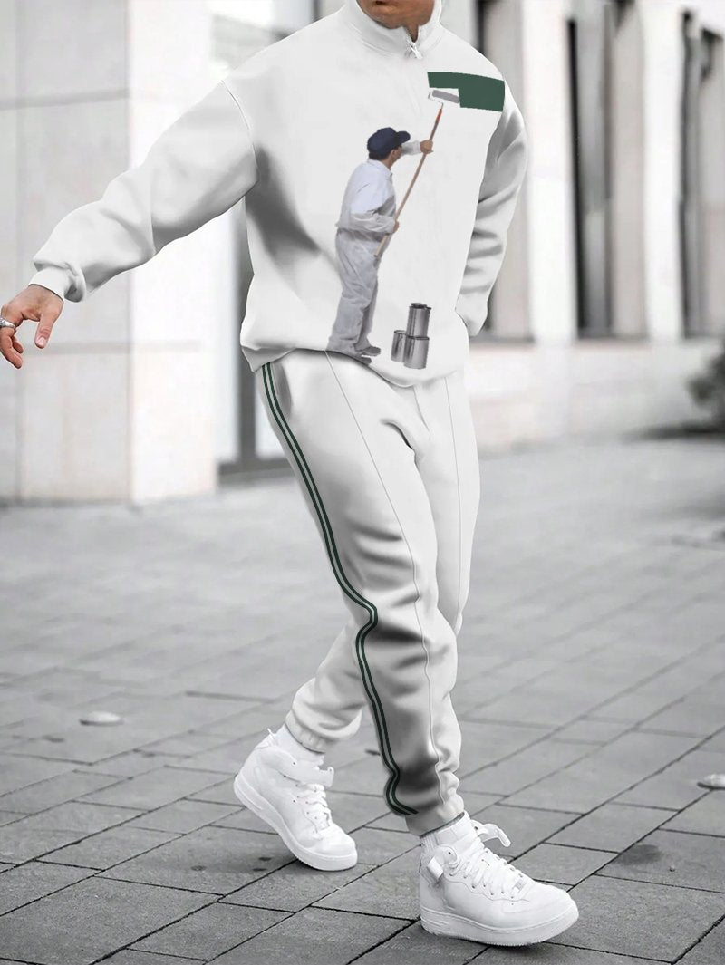 Herren Sportliches Sweatshirt mit modernem Zipper und grafischem Muster Aliams