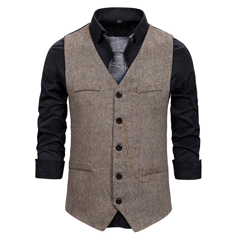 Herren stilvolle Anzugweste im eleganten Fischgrätmuster mit praktischen Taschen Aliams