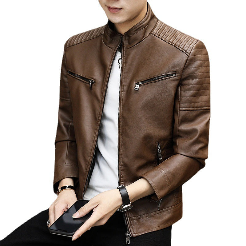 Herren stilvolle Kunstlederjacke mit schützenden Steppnähten Aliams