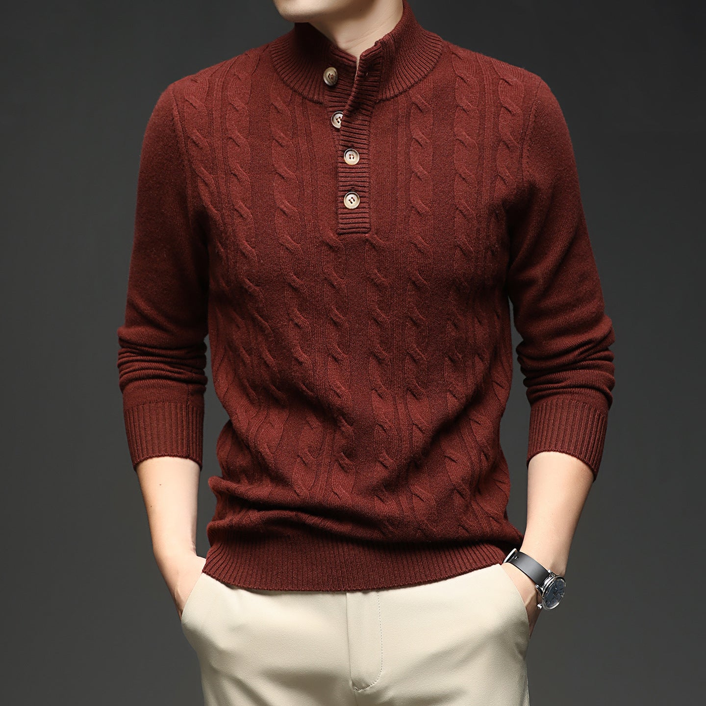 Herren Strickpullover mit Stehkragen und Knopfleiste Aliams