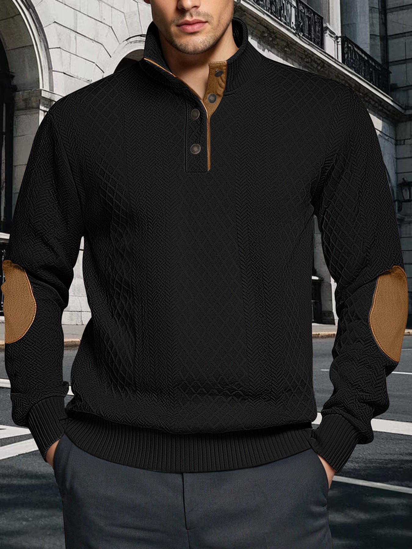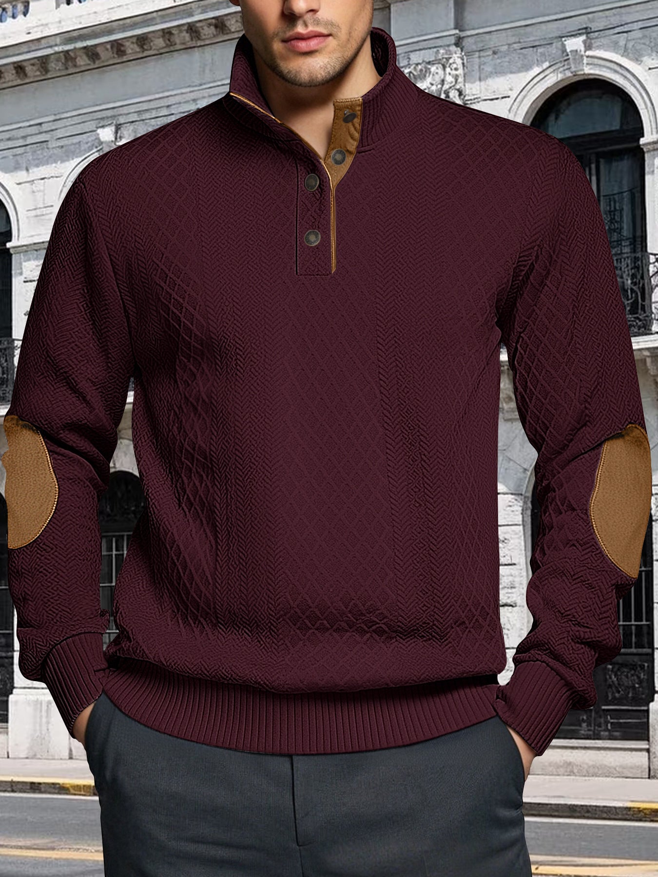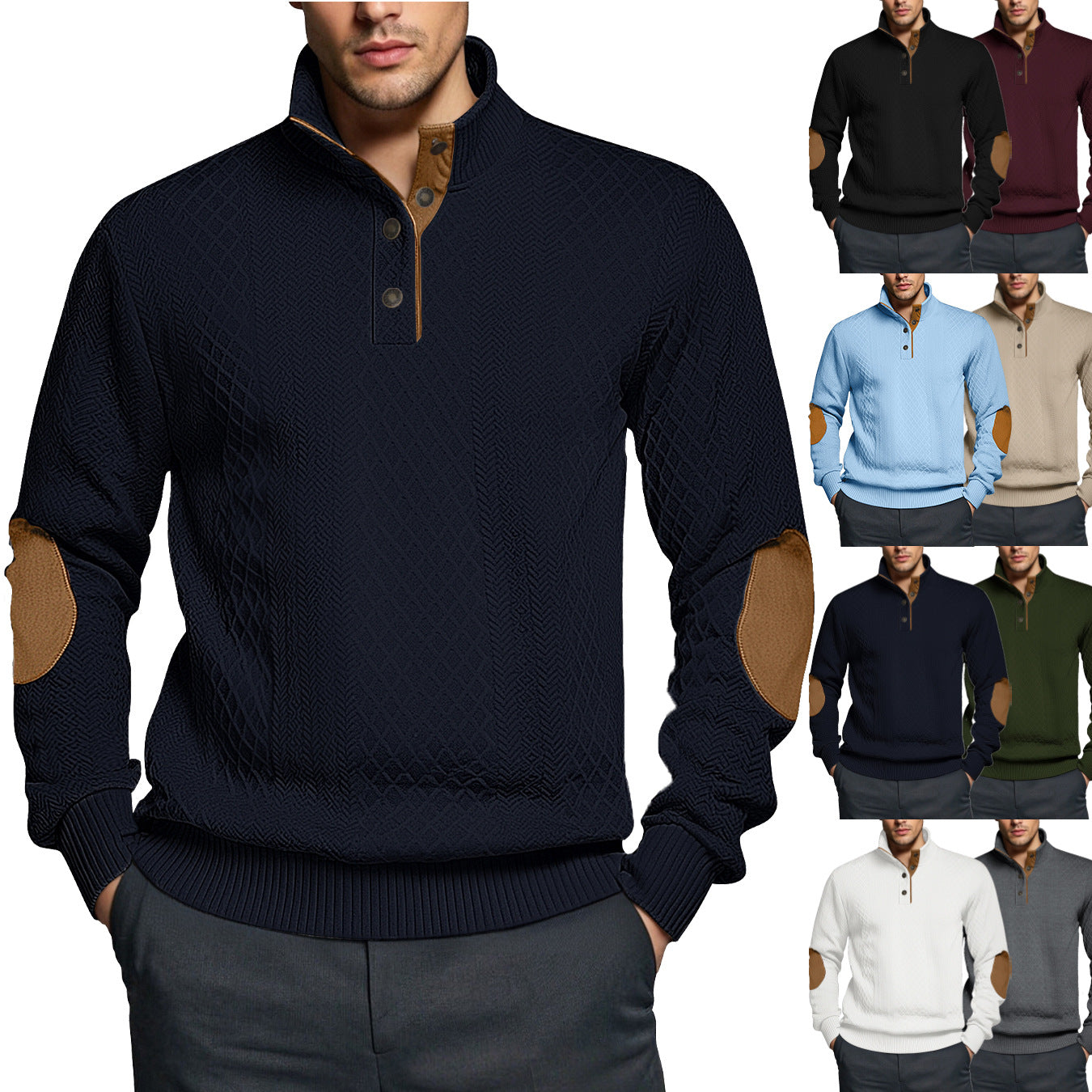 Herren Strickpullover mit strukturiertem Design und Lederpatches Aliams