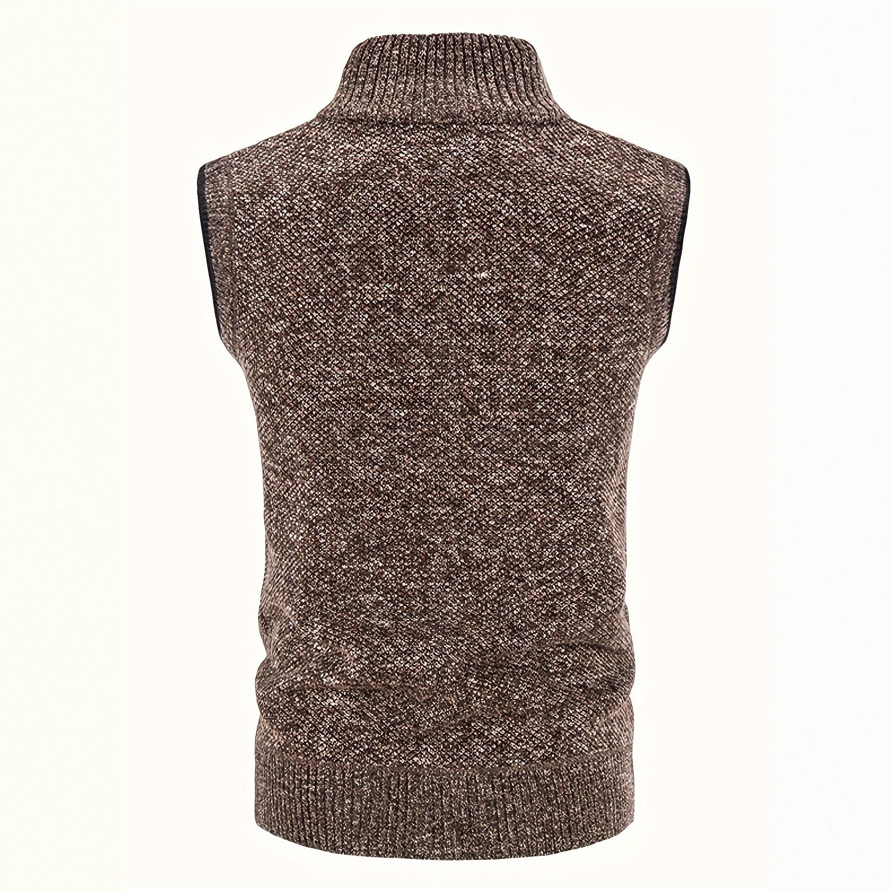 • Modisches Design: Der hohe Kragen und das strukturierte Strickmuster verleihen der Weste einen zeitlosen, eleganten Look.