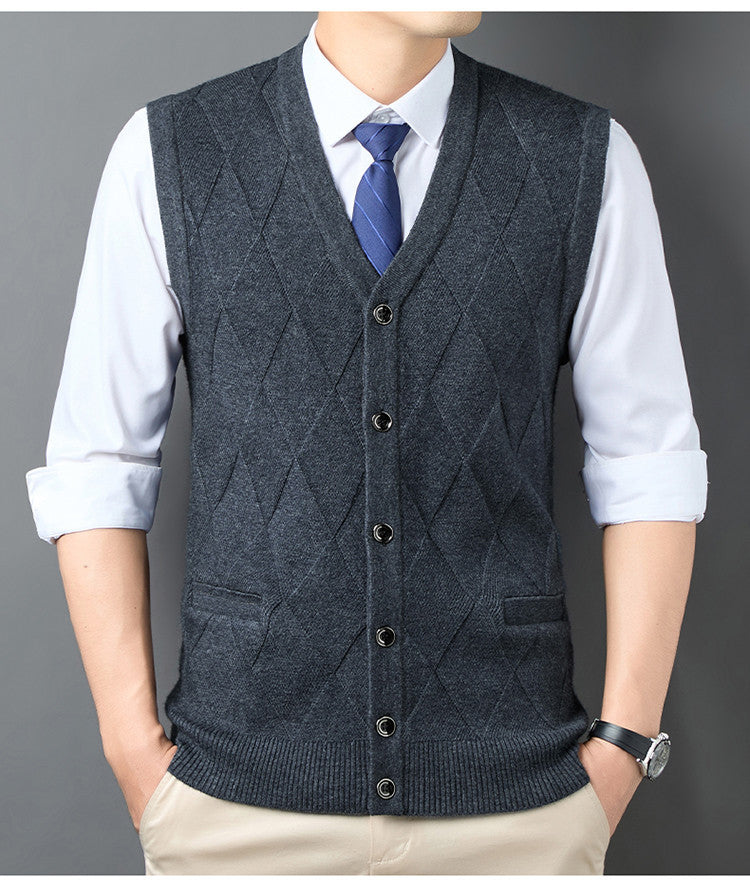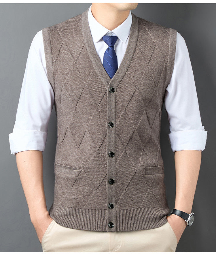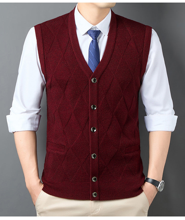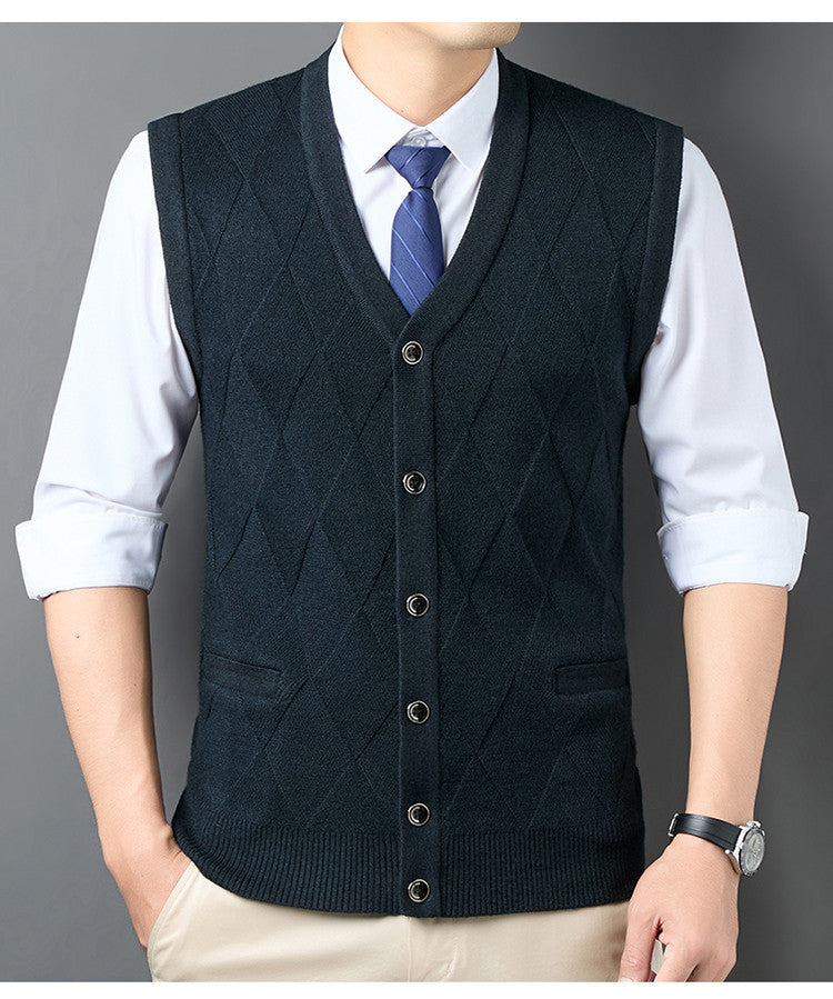 Herren Strickweste mit V-Ausschnitt und klassischem Rautenmuster Aliams
