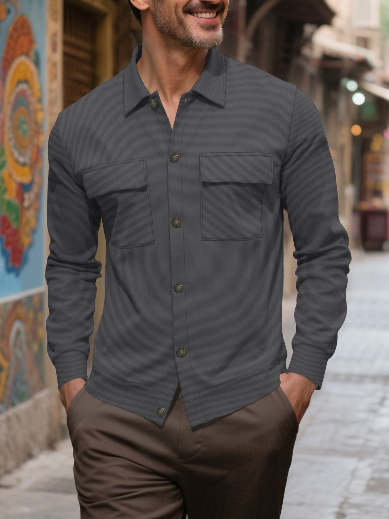 Herren strukturiertes Freizeithemd mit praktischen Taschen Aliams