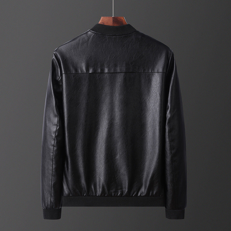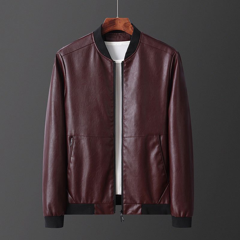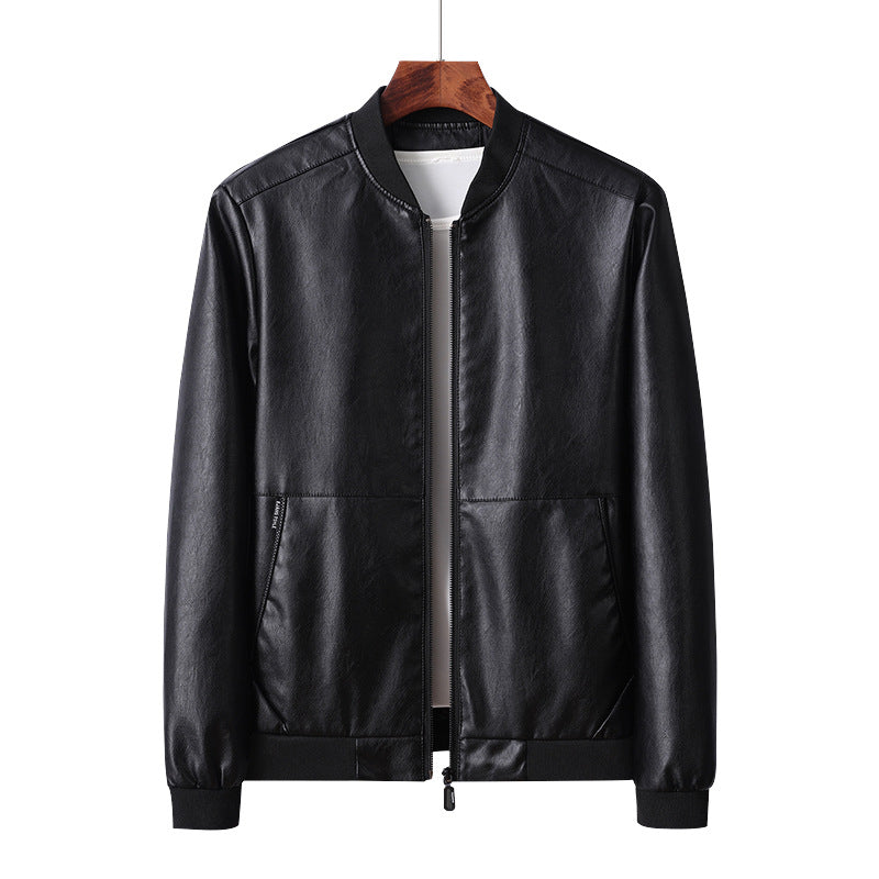 Herren stylische Kunstleder Bomberjacke mit elastischen Bündchen Aliams