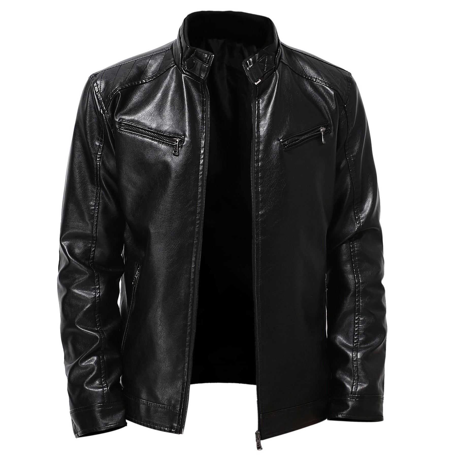 Herren stylische Kunstleder-Motorradjacke im Biker-Stil Aliams