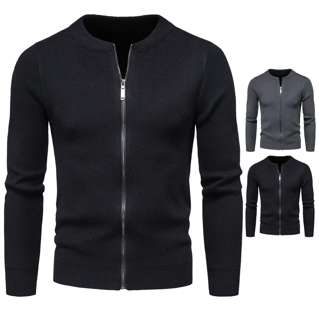 Herren stylische Strickjacke mit modernem Zipper und hohem Kragen Aliams