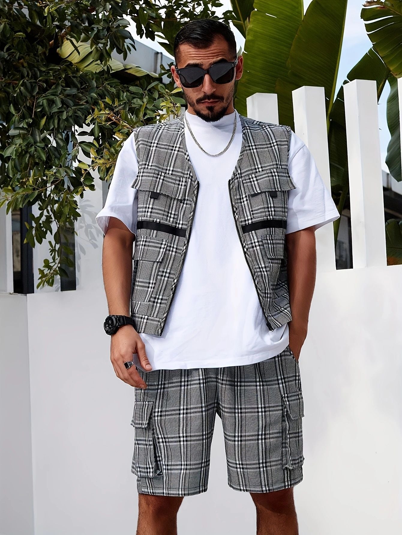 • Durchdachtes Design: Das moderne Karomuster verleiht der Weste einen einzigartigen Look, während die verstellbaren Riemen zusätzlichen Komfort bieten.