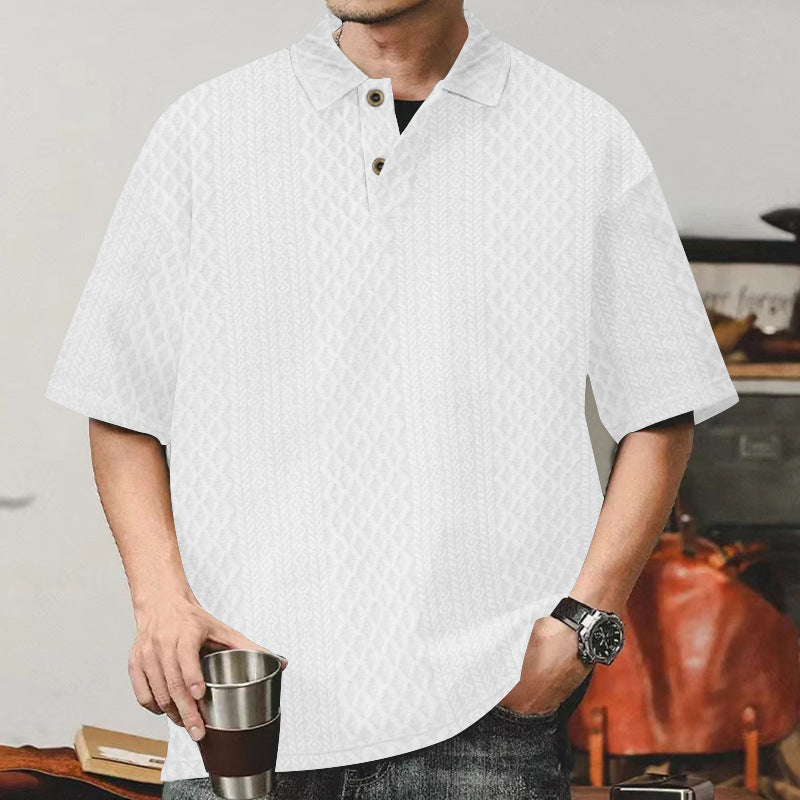 Herren Trendiges Kurzarmhemd mit strukturiertem Design und Knopfleiste Aliams