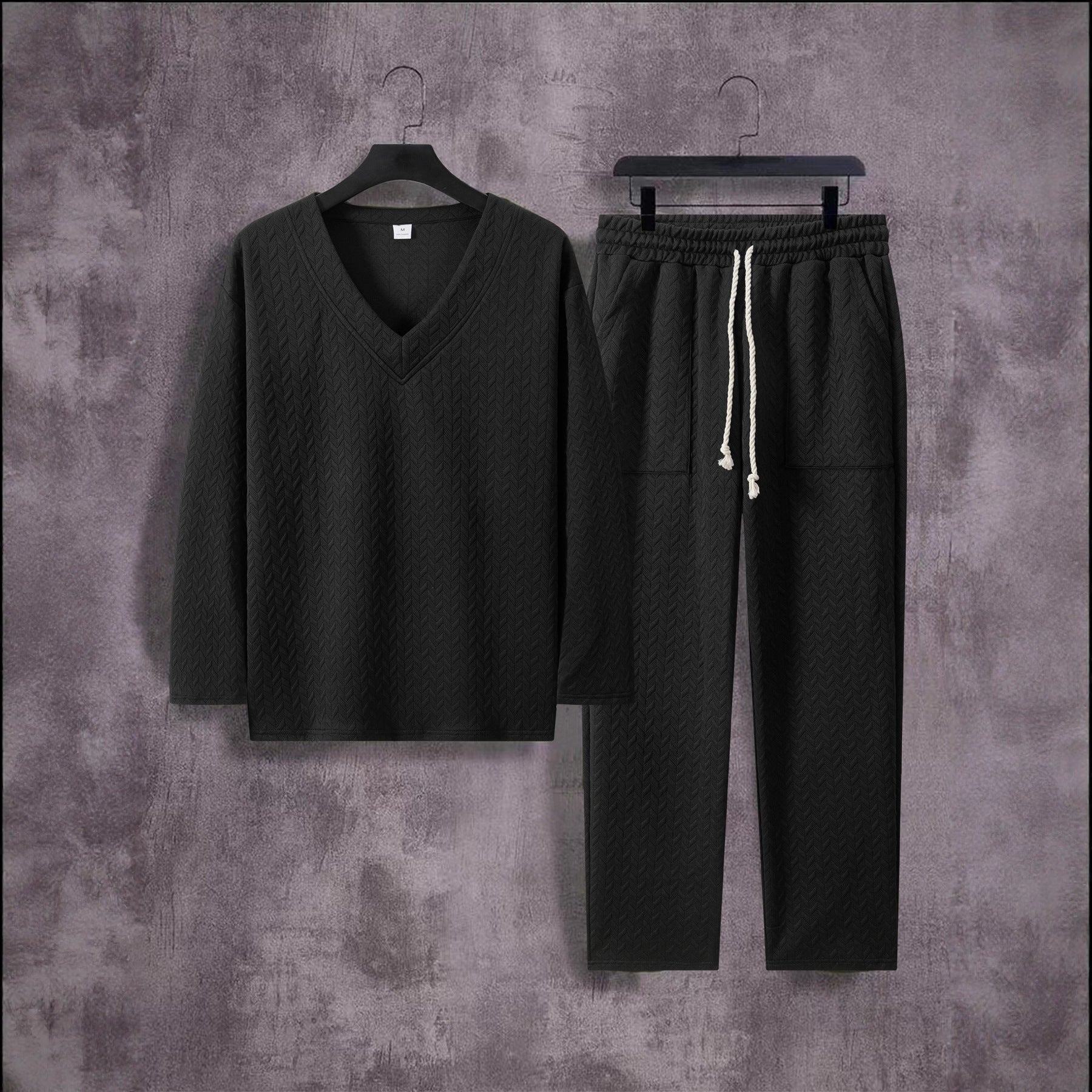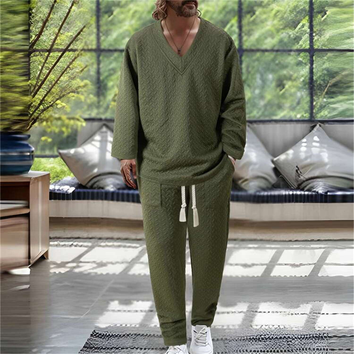 Der Herren V-Ausschnitt Freizeitanzug von Aliams vereint Komfort und modernes Design in einem einmaligen Outfit. Ideal für entspannte Tage zuhause oder legeres Ausgehen, bietet dieser Anzug eine perfekte Mischung aus Stil und Funktionalität.