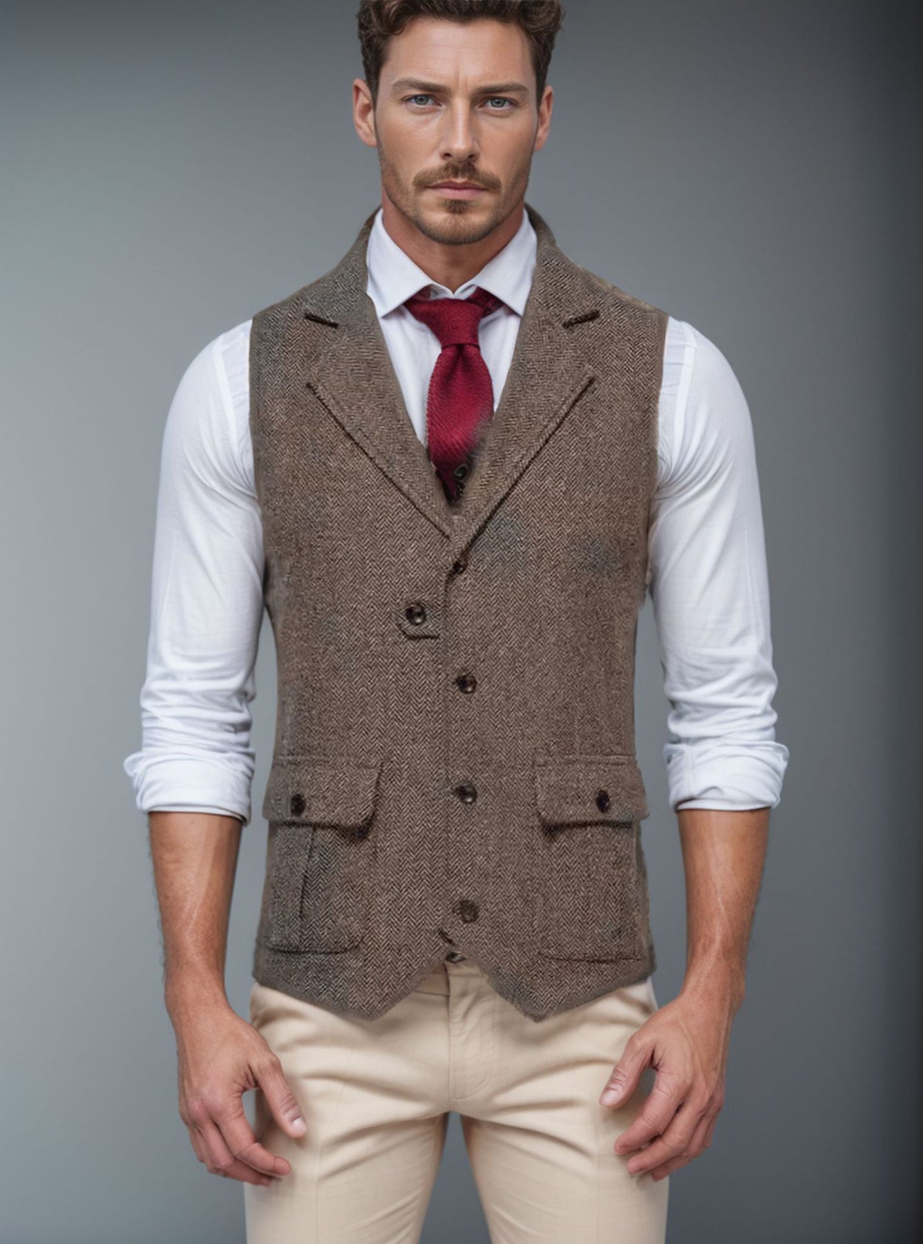 • Elegantes Herringbone-Muster: Verleiht der Weste einen zeitlosen, eleganten Look.