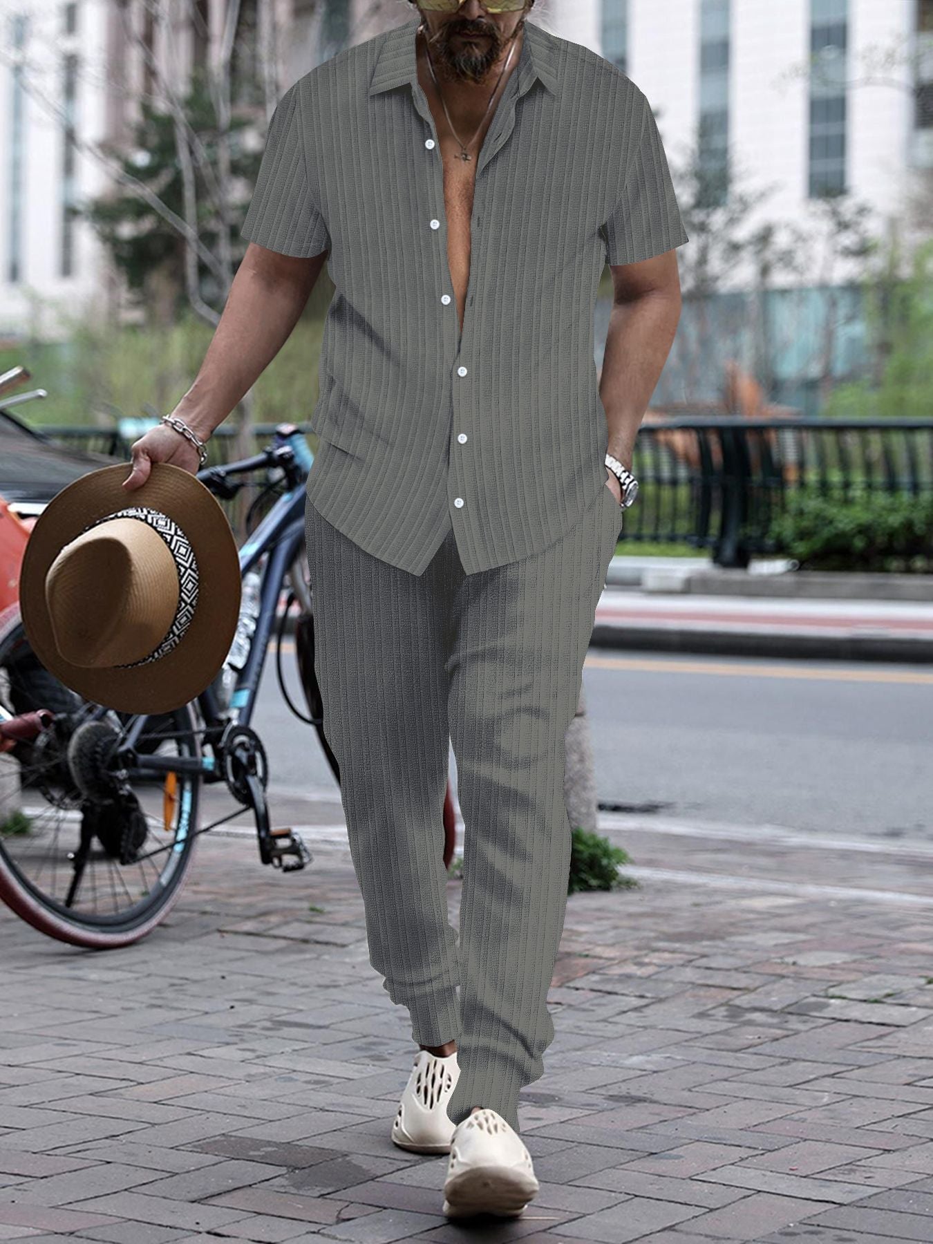 Entdecken Sie das Ultimative in Komfort und Stil mit unserem Herren stilvollen Kurzarm gestreiften Lounge-Set. Entworfen für den modernen Mann, ermöglicht dieses Lounge-Set, Ihre Freizeit zu genießen, ob zu Hause oder unterwegs.